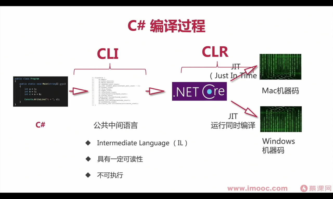 CLI:Common Language Infrastructure 公共语言基础框架,处理代码过程