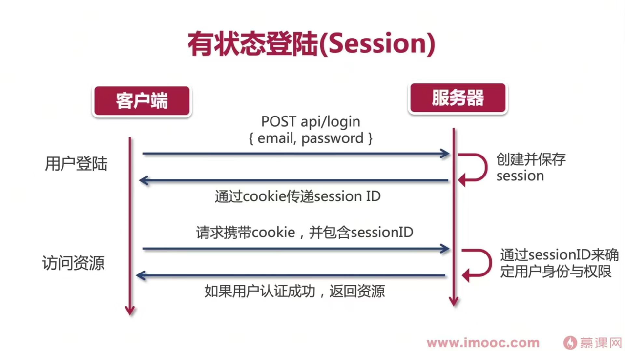 传统的Session登录时,服务器会保存登陆的session信息,session ID会通过cookie传递给前端,http请求会附带cookie,实现有状态登陆。